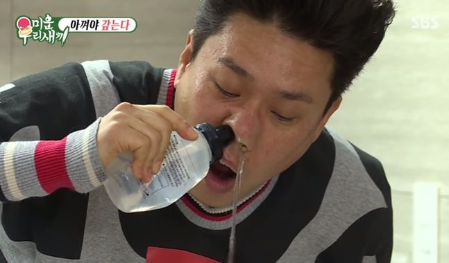 비염으로 인해 코를 씻어주는 방송인 이상민님(출처: SBS 미우새)