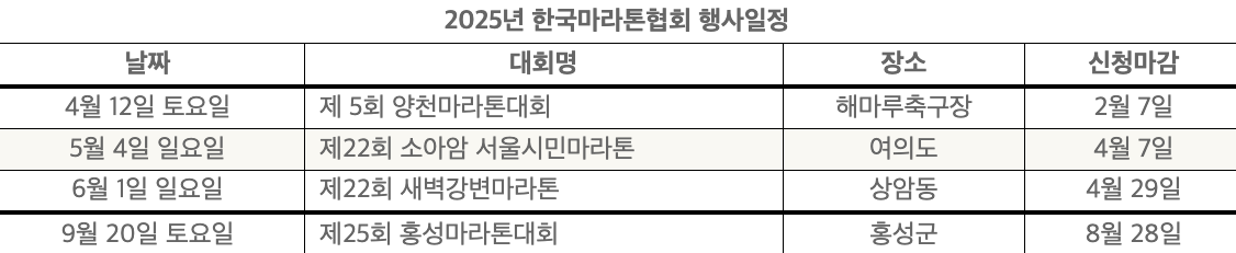 | 서울국제마라톤 | https://www.seoul-marathon.com |